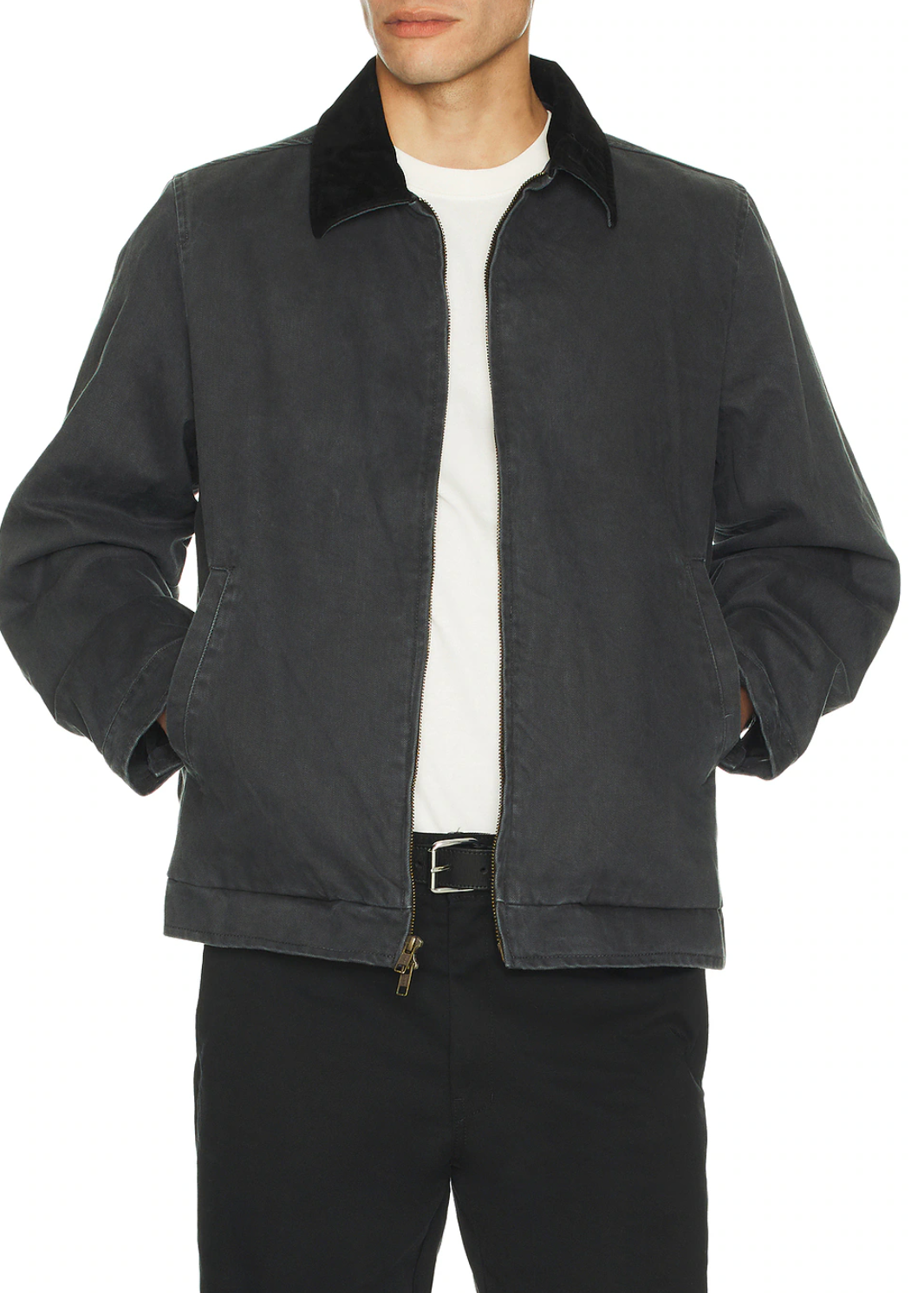 CITY STYLE. 100% cotton.Lining: 65% polyester, 35% cotton. Machine wash. Front zipper closure. Side seam pockets. Velour collar. Button cuffs. Midweight canvas fabric. Made in ChinaRevolve Style No. RHYT-MO12. Manufacturer Style No. CD25M-JK09-BLK.